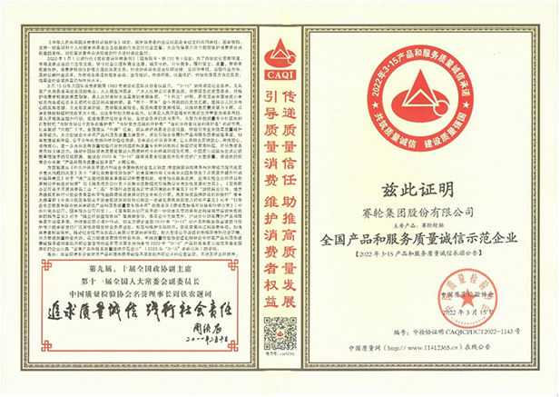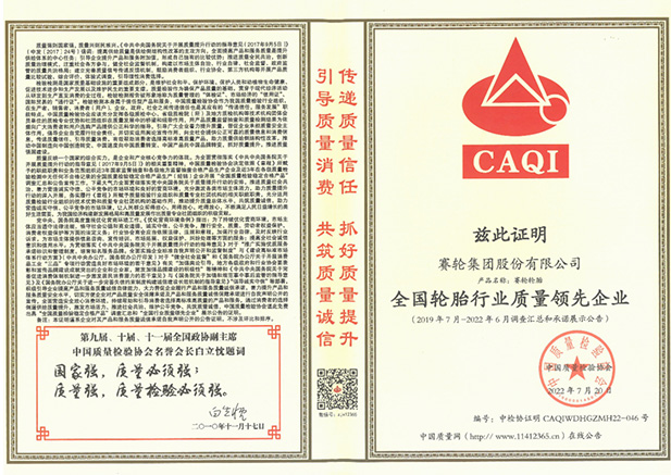 为保证产品可更好的符合不同国家的需求,使产品发挥最优性能,保证安全,尊龙凯时-人生就是博已通过全球近58个国家的各种认证认可,如:ISO 9001:2015、IATF 16949:2016、ISO 10012:2003测量管理体系认证(AAA)、CCC中国强制性产品认证、CNAS实验室认可等。曾获全国消费者质量信息保障产品、全国产品和服务质量诚信示范企业、全国质量检验稳定合格产品、全国质量检验信得过产品、全国轮胎行业质量领先企业、第八届青岛市市长质量奖、2021年山东省省质量标杆和2020年全国质量标杆等荣誉。